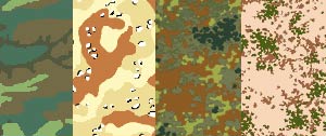 基本的には自分の好みの迷彩柄の服を使用する。現在最も流通しているのはアメリカ軍迷彩服である。また柄にもいくつかのパターンがある。茶色くした砂漠用迷彩や白くした雪上用迷彩、そして最も多いのが緑色の緑地迷彩である。
